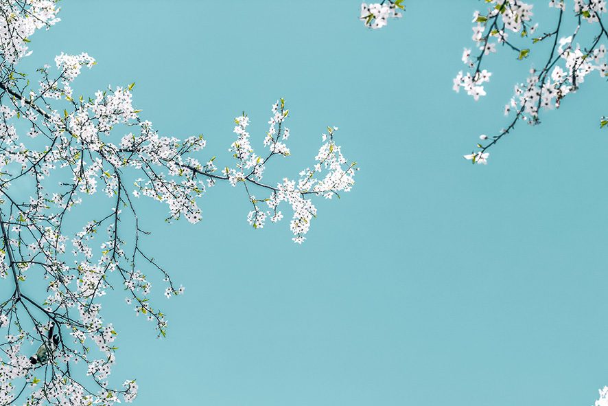 Beyaz Bahar Dalı Gökyüzü Duvar Kağıdı W6672