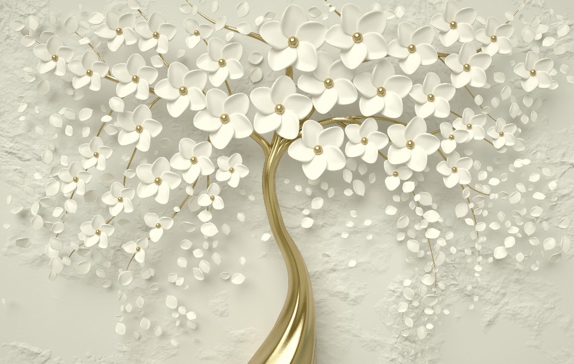 Beyaz Çiçek Gold Ağaç Duvar Kağıdı W6637B