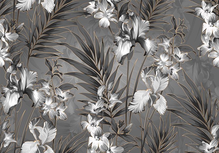 Gri Çiçek Gold Duvar Kağıdı W6668